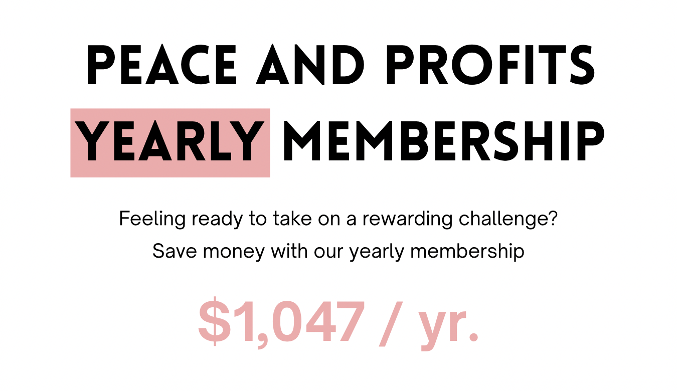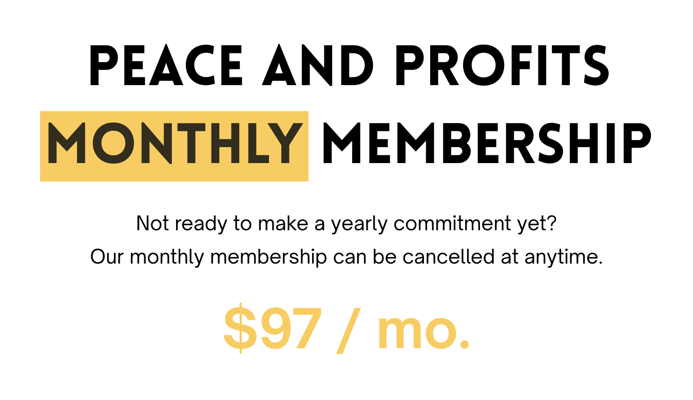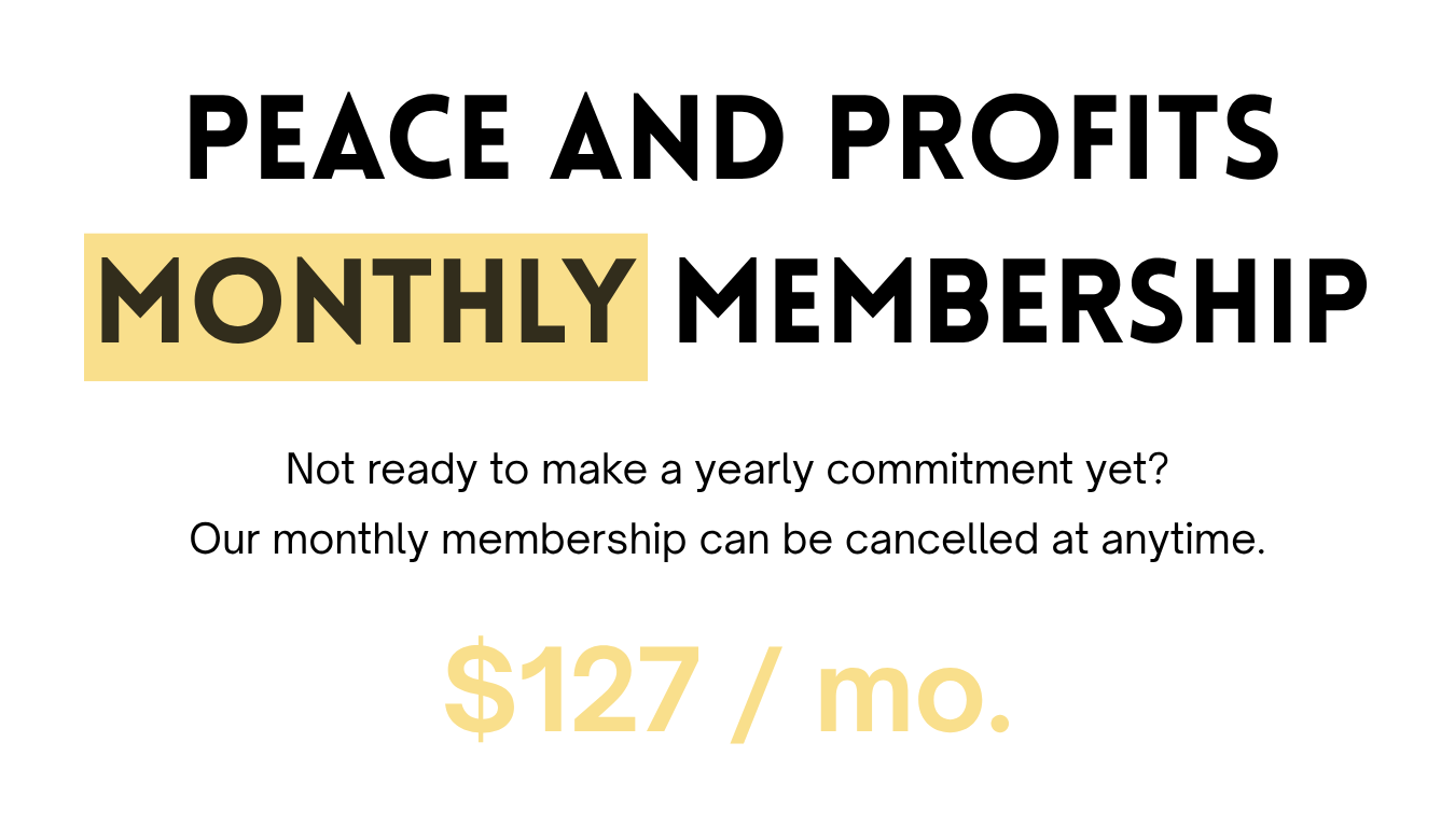 Let's make sure you feel confident in joining The Peace & Profits Membership. Please reach out with any questions you have and we will be happy to answer.